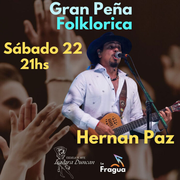 Este sábado 22 de Junio a partir de las 21 hs la Escuela Isadora Duncan y La Fragua te invitan a una Gran peña folclórica Con Hernán Paz, una velada para disfrutar y bailar lo mejor de nuestro folclore.