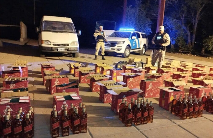 El personal constató que se trataba de más de 800 botellas de whisky de origen extranjero que habían sido cruzadas por el río Paraguay y no tenían el correspondiente aval aduanero.
