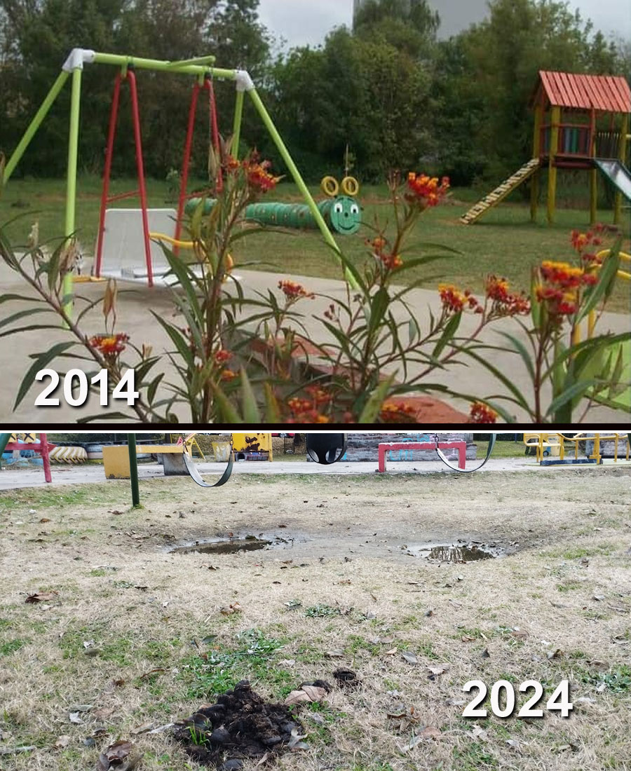 Lamentablemente ese tiempo, pese al sacrificio de los vecinos por mantenerlo, la falta de intervención de las autoridades de turno y el accionar de inadaptados cometiendo vandalismo tras vandalismo, lo fueron deteriorando progresivamente.