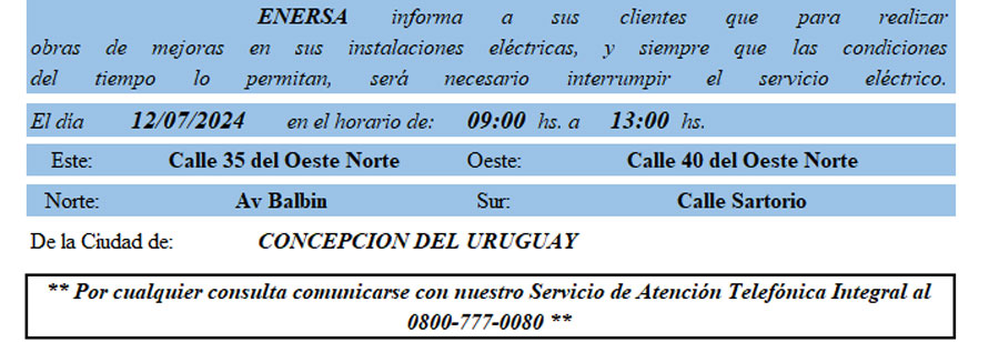 ENERSA avisó corte de servicio