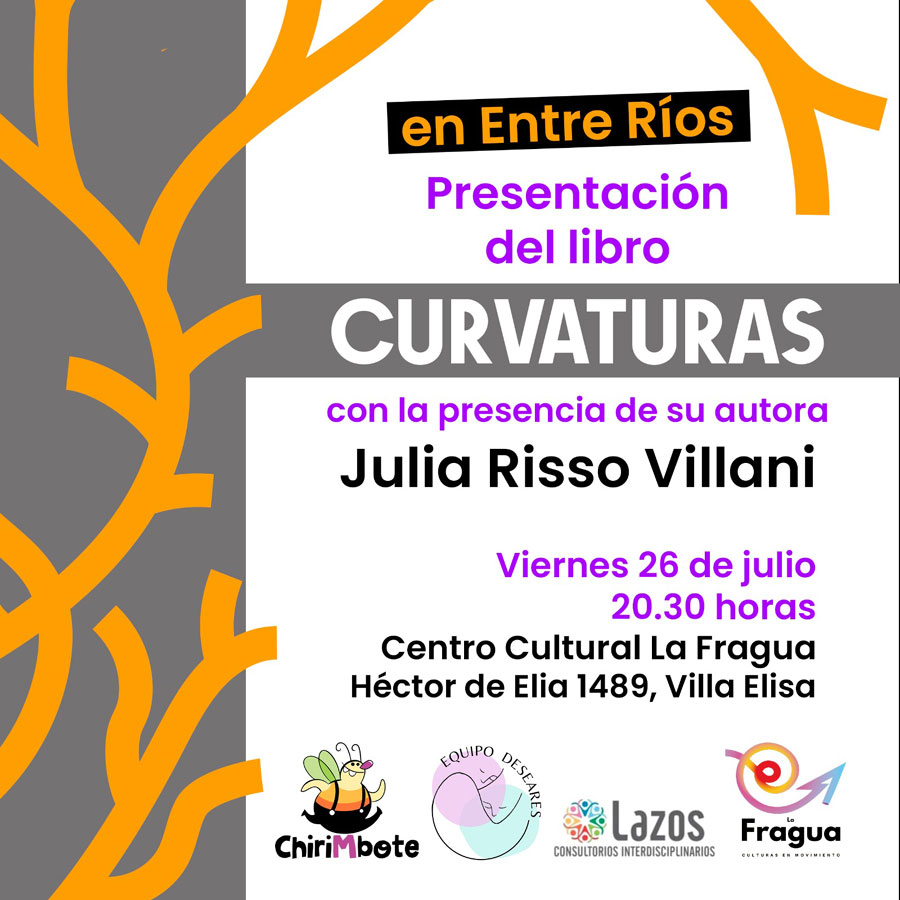 El viernes 26 de julio a las 20:30 hs recibimos en La Fragua a Julia Risso que viene a compartir con nosotros la presentación de su libro “Curvaturas. El dolor nunca tuerce el deseo”.