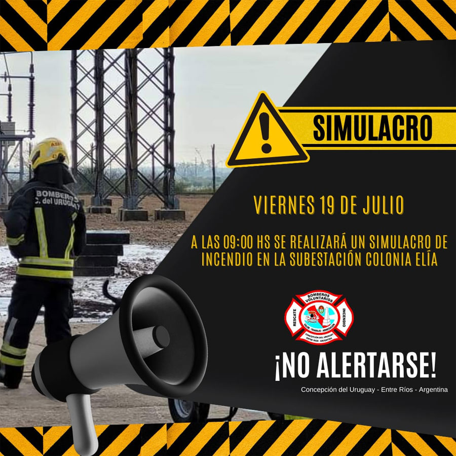 El mismo será a las 09:00 horas en la Subestación Salto Grande Colonia Elía, donde perticiparán bomberos de esa localidad de de La Histórica.