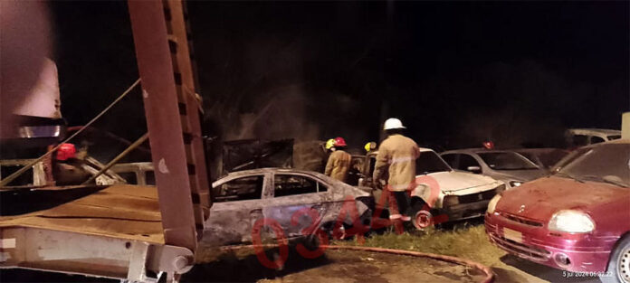 Varias dotaciones de Bomberos Voluntarios, debieron tomar intervención en esta madrugada de viernes, cuando se incendiaron varios autos en el puesto caminero Brazo Largo.