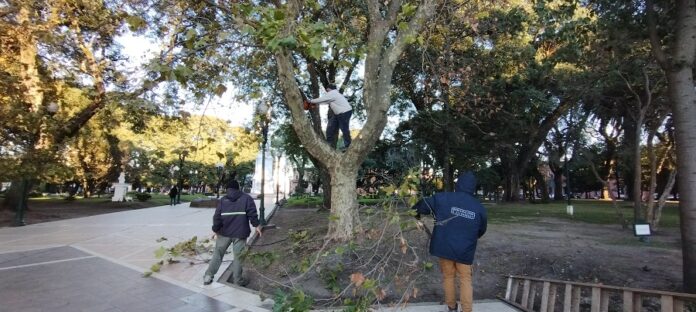 Desde Arbolado Urbano, señalaron que se está trabajando en los lapachos del anillo perimetral de la Plaza, para luego continuar con los ejemplares de mayor porte, buscando corregir cuestiones estructurales de los mismos, previniendo accidentes como desgajes o quiebre de ramas de importante tamaño.