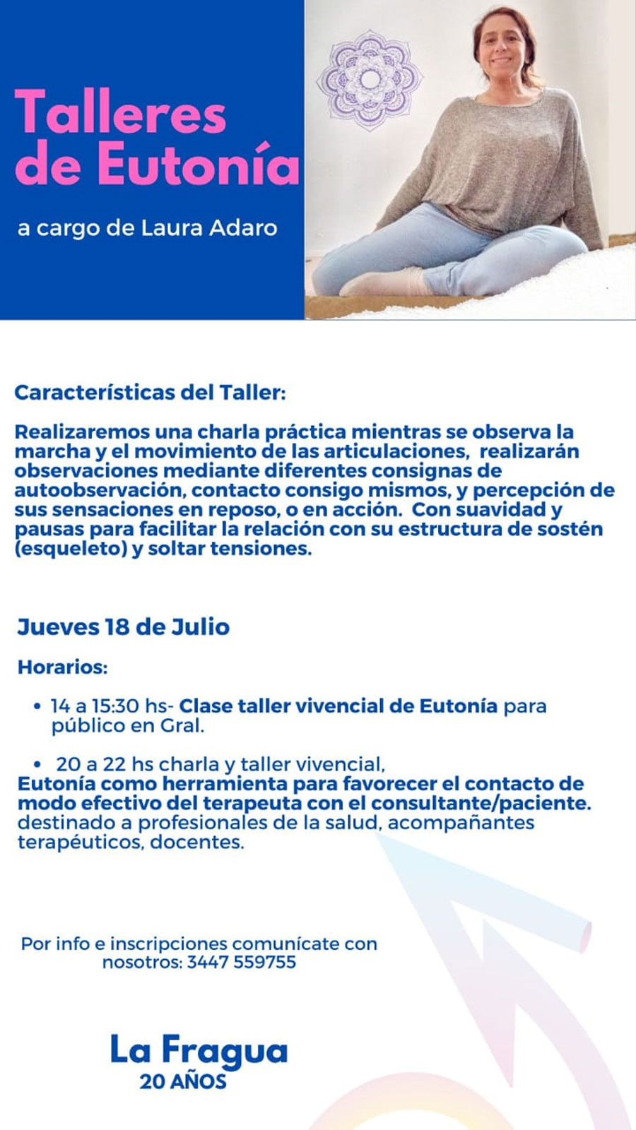 El día Jueves 18 de julio, se estará dictando en La Fragua un taller de Eutonía, una pedagogía de abordaje corporal que permite al practicante, lograr un equilibrio psicofísico.