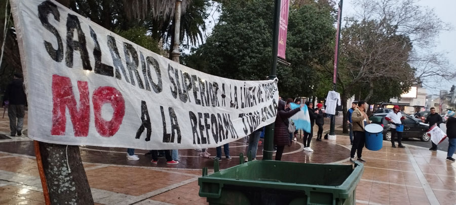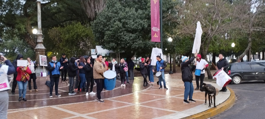 Un grupo de docentes de la línea Fuentealba, se concentraron este jueves por la tarde en el mástil de Plaza General Ramírez, Urquiza y 9 de Julio, donde se manifestaron y reclamaron por las medidas del gobierno.