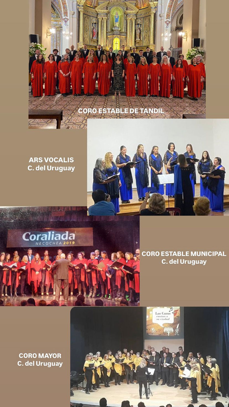 Participarán el Coro Estable de Tandil Dir. Annele Moroder, Coro Estable Municipal Dir. Juan Miguel Lacava, Ars Vocalis Coral femenino Dir. Elizabeth Schimpf y Coro Mayor Dir. María de los Dolores Puga.