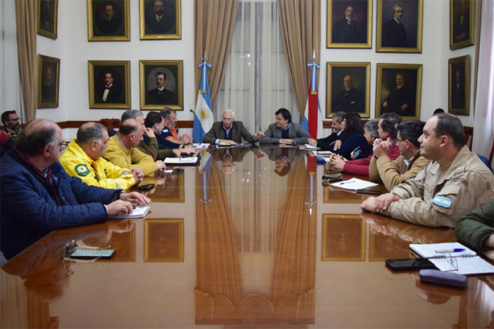 El ministro de Desarrollo Económico, Guillermo Bernaudo, y el subsecretario de Protección Civil de la Nación, Santiago Hardie, coordinaron el encuentro para avanzar en la ejecución de estrategias de contención de los fuegos. Y lo hicieron junto a expertos de las áreas vinculadas a la prevención y el combate incendios de los Ministerios de Seguridad, Ambiente, y Salud de la Nación y personal de Prefectura y Gendarmería Nacional; como también de la Policía de Entre Ríos.