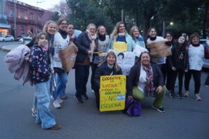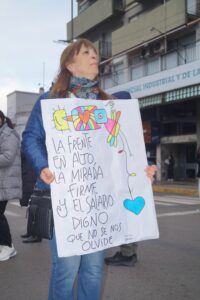 La primera expresó que los docentes «trabajamos para no ser pobres» recordando además que «la justicia nada dice del vaciamiento de la caja y del pago en negro. No pararemos hasta que los salarios salgan de línea pobreza» a la vez que agradeció a las «familias que nos apoyan en esta lucha».
