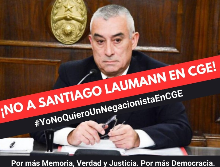 Somos un grupo de docentes, estudiantes, referentes de los organismos de DDHH, comunicadores/as, militantes políticos de distintos partidos políticos, referentes gremiales, trabajadores y ciudadanxs de toda nuestra provincia quienes dimos los pasos en tiempo y forma, según lo disponen las normas, para impugnar al Lic. Santiago Laumann ya que no reúne los requisitos necesarios para ocupar el cargo de vocal en el organismo central del CGE por pruebas halladas de su identificación con el negacionismo y la reivindicación del horror y el saqueo de la última dictadura argentina.