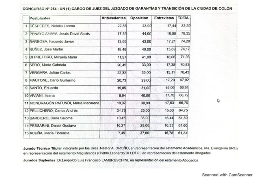 Pero la ventana para el ingreso de Seró se podía abrir si el Dr. Jesús Penayo Amaya, que obtuvo el puesto 2 en dicho concurso y también en el concurso para el cargo de juez de Garantías de Colón, era propuesto por el gobernador Frigerio por sobre la actual ocupante de dicho juzgado en aquella ciudad, la doctora Céspedes.