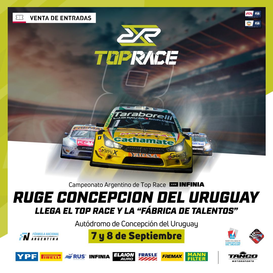 El 7 y 8 de septiembre el Autódromo Concepción del Uruguay, Entre Ríos, será sede de la 8º fecha del 30º Campeonato Argentino de Top Race YPF INFINIA y de la 6° fecha del Campeonato Argentino de Fórmula Nacional. Los mejores pilotos y los autos más potentes y “La Fábrica de Talentos” llegan a “La Histórica”.