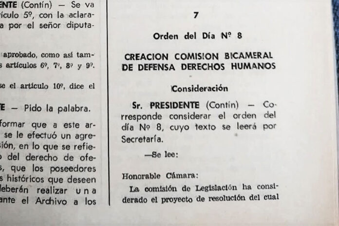 En 1984, la Legislatura provincial creó la Comisión Bicameral para la Defensa de los Derechos Humanos, impulsada por Adolfo Lafourcade. Esta iniciativa fue ratificada oficialmente en las sesiones del 26 de septiembre y el 10 de abril, la misma se integró con figuras destacadas como Juan Ángel Redruello, José Luis Lena y Gustavo Marcó. La comisión tuvo la importante tarea de recibir denuncias sobre violaciones a los Derechos Humanos perpetradas por las fuerzas militares y civiles en la provincia, en sintonía con el trabajo de la Conadep.