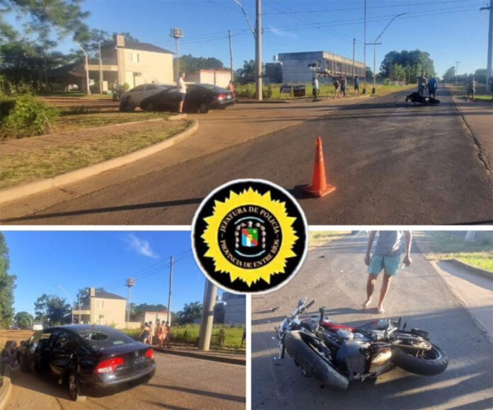 El siniestro ocurrió este domingo a las 19 horas, en la intersección de Ruta 2 y calle Los Curupies, justo en el arco de acceso a la bahía de Santa Ana, departamento Federación, resultando grave un hombre de 34 años.