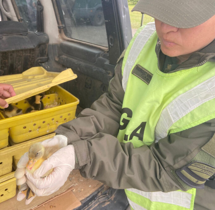 Al momento de la inspección, los uniformados escucharon sonidos provenientes del baúl. Al abrirlo, en presencia de testigos, los gendarmes hallaron 150 patos pekin que estaban distribuidos en tres cajas plásticas de color amarillo.