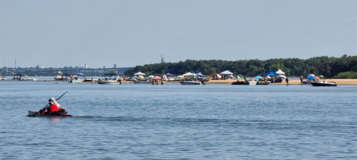 Turistas de Colón que van a la isla del Queguay