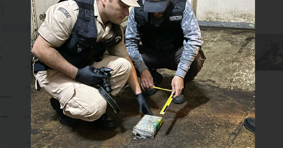La inspección se realizó en el marco de las acciones de control para prevenir el delito y se llevó a cabo en la bodega de carga N°1 de la embarcación, donde los efectivos de la Fuerza detectaron un paquete con envoltorio de color blanco, oculto debajo de un caño de agua.