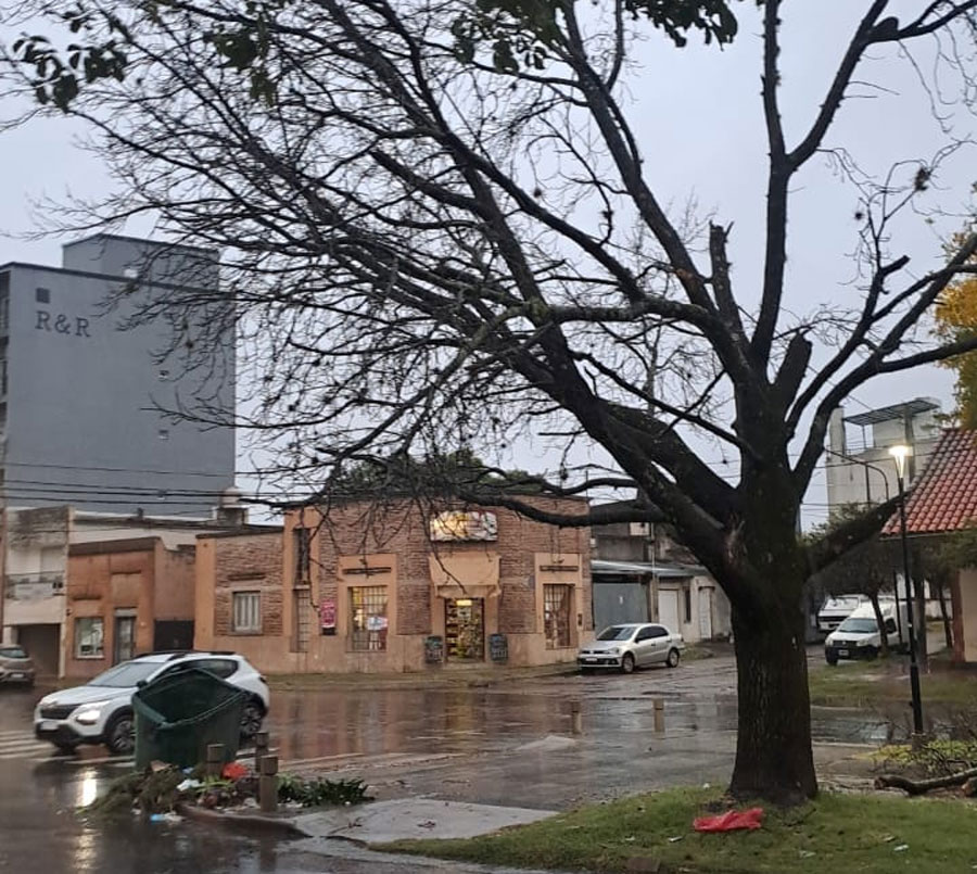 Es que en estas horas de lluvia y viento, se quebró una gran rama de un árbol, que quedó soportada por otras.
