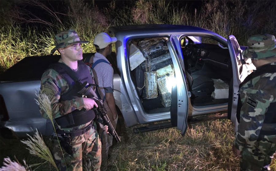 La persecución culminó con el hallazgo del rodado abandonado a la altura del kilómetro 1.420 de la ruta. Tras un minucioso rastrillaje, se hallaron varios  bultos con panes  de marihuana en su interior.