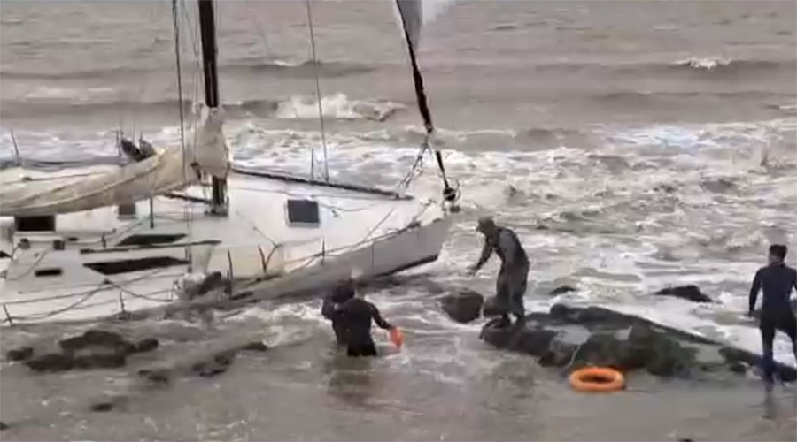 Colegas de El Telégrafo confirmaron que la embarcación había salido desde es Yacht Club del Uruguay y al parecer el viento y una falla del motor, los llevó a el encallamiento, causándole importantes daños.