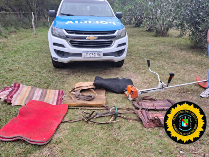 Tras la notificación a un hombre de 34 años, se procedió al registro del domicilio, lográndose el secuestro de diversos elementos relacionados con actividades rurales y de monta, entre ellos: