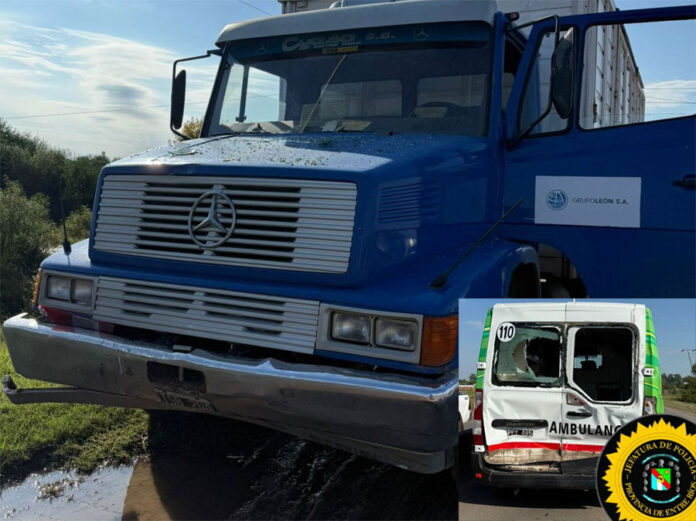 Se produjo esta mañana alrededor de als 10:30 un siniestro vial en la intersección de Juan José Bruno y la calle 17 de Octubre, en el cual se vieron involucrados una ambulancia del servicio de emergencias «Alerta» y un camión.