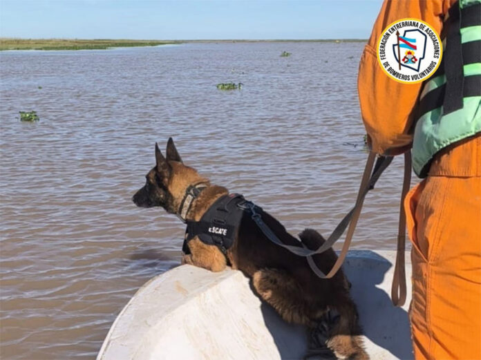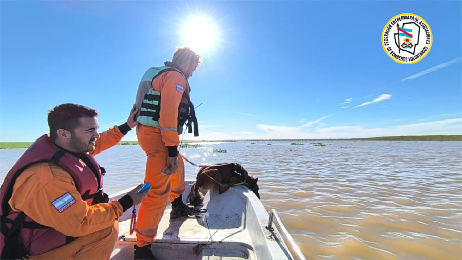 De esa manera se presentó en la zona la Brigada K-9 de la Federación Entrerriana de Asociaciones de Bomberos Voluntarios para la localización de los 3 pescadores, desparecidos desde el día sábado 17 de mayo.