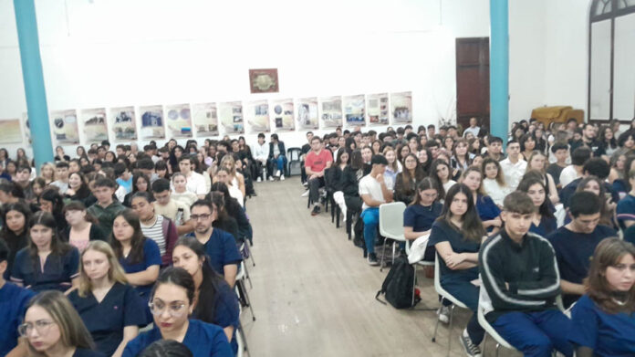 El Dr. Sauret también hizo hincapié en el notable avance de los estudiantes, resaltando que más del 80% de ellos ha adquirido regularidad gracias a su asistencia y rendimiento en los exámenes. Reconoció la labor de los tutores y guías en esta transición y los invitó a reflexionar sobre el cambio que representa el paso a la vida universitaria.