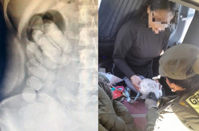 Ya en el hospital, una radiografía confirmó la presencia de cuerpos extraños en su abdomen. Con el paso de las horas, la implicada evacuó un total de 106 cápsulas adicionales. En total, se incautaron 118 envoltorios que, tras el test de campo narcotest, arrojaron resultado positivo para clorhidrato de cocaína.