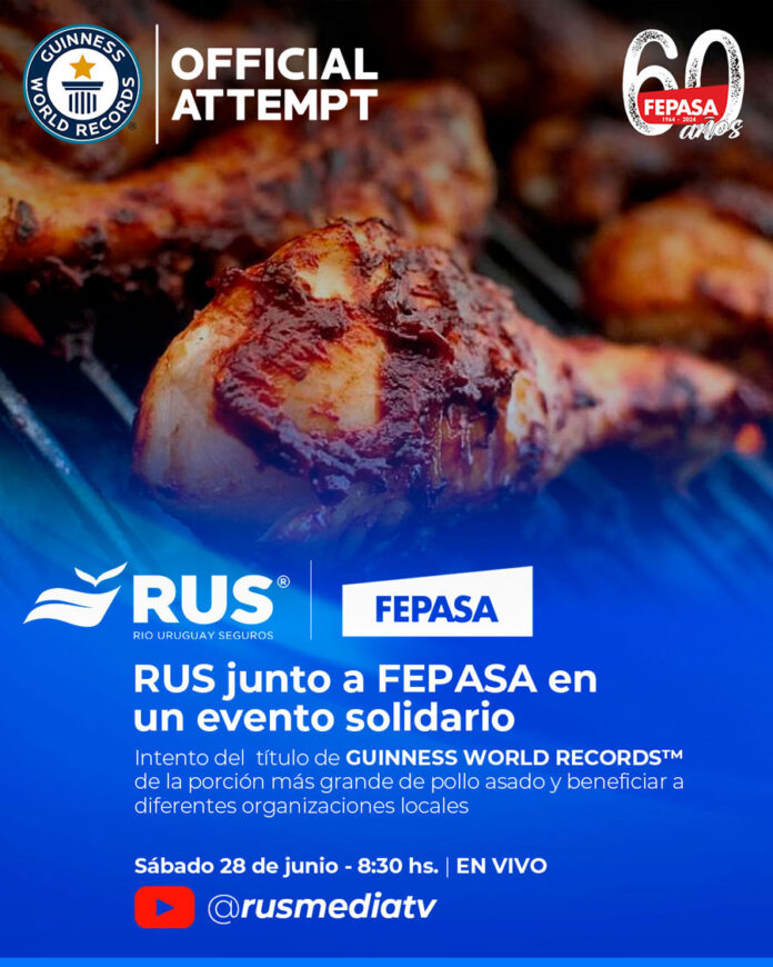 El próximo sábado 28 de junio, en el Predio Multieventos de Concepción del Uruguay, Entre Ríos, la firma avícola FEPASA buscará lograr el título de GUINNESS WORLD RECORDS™ de la porción más grande de pollo asado, acción que, además, tendrá un propósito solidario: donar los pollos a organizaciones sociales, deportivas y educativas que podrán venderlos para recaudar fondos y sostener proyectos comunitarios.