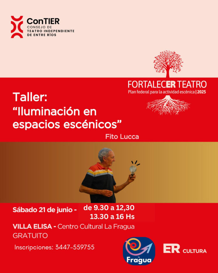 Este sábado 21 de junio a partir de las 9:30 hs se estará dictando en La Fragua un taller gratuito y para todo público de «Iluminación en espacios escénicos», a cargo de Fito Luca.