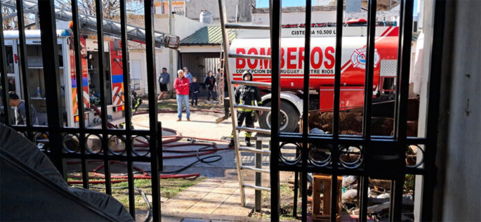 Personal del Cuerpo de Bomberos Voluntarios de Concepción del Uruguay, debió intervenir este mediodía por un incendio desatado en una casa de calle Millán al 600, entre Teniente Ibáñez y Pablo Lorentz, del Barrio Santa Teresita.