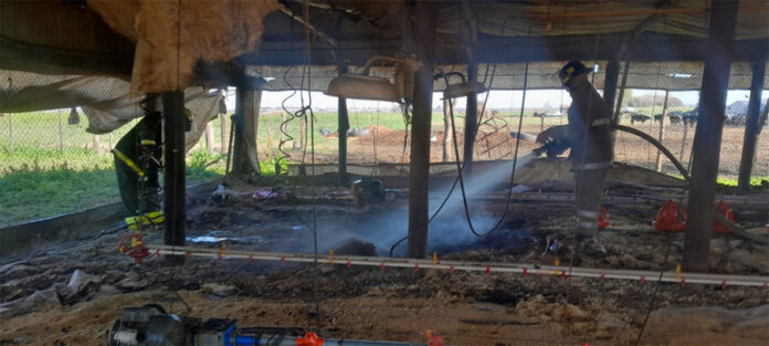 Personal de Bomberos Voluntarios de Caseros y San Justo, acudieron este lunes por la mañana a una granja de pollos, ubicada en Ruta “J”, al ser alertados sobre un incendio.