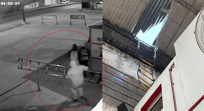 Según trascendió, los malvivientes actuaron con notable organización y utilizaron una escalera para alcanzar la parte superior del edificio. Una vez en los techos, habrían intentado ingresar al local comercial practicando un boquete en las chapas y desplegando una escalera de soga al interior.
