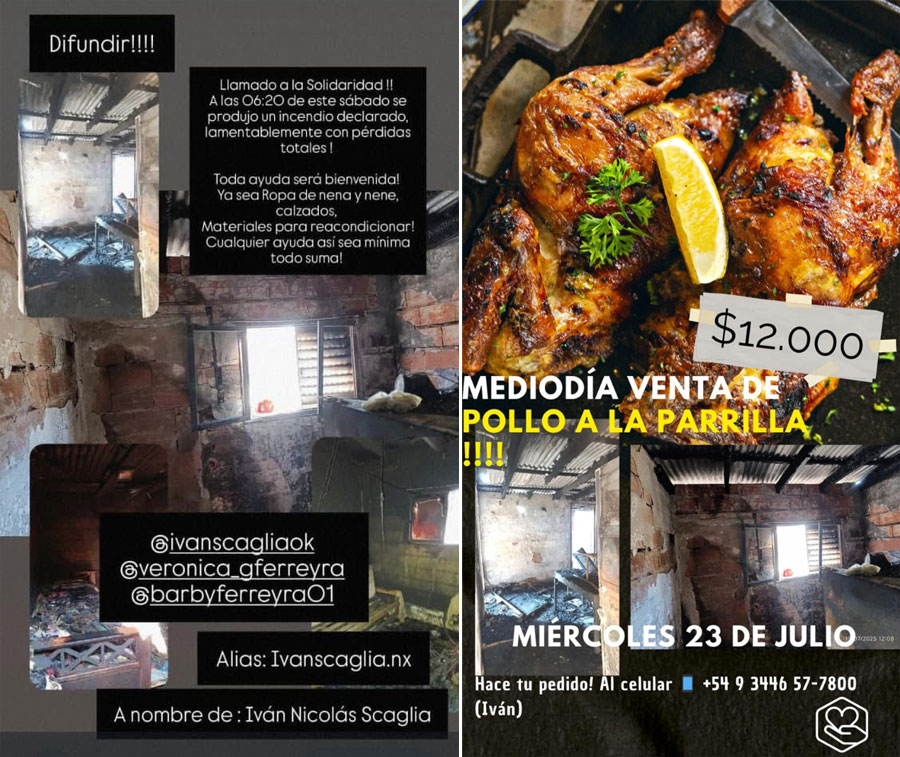 Frente a esta difícil situación, la solidaridad de vecinos, conocidos y amigos no se hizo esperar. En las últimas horas se organizaron una colecta solidaria y una venta de pollos con el objetivo de recaudar fondos y ayudar a esta familia a empezar de nuevo.