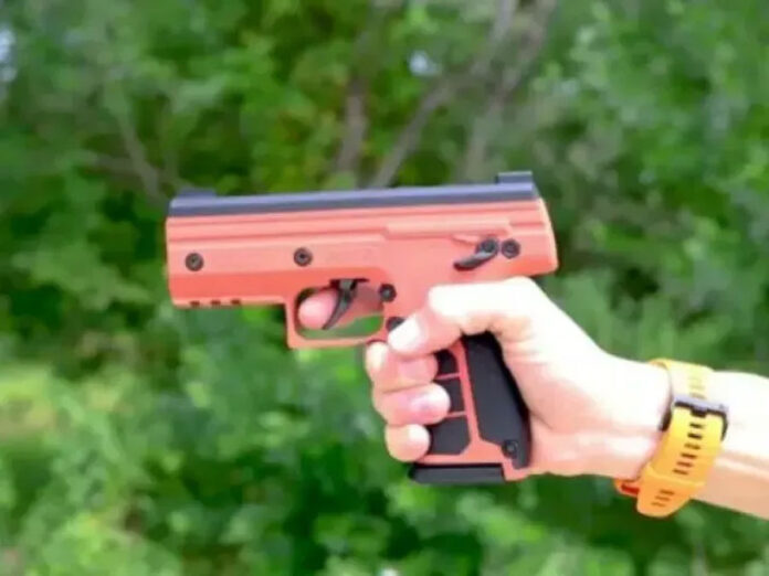 Las pistolas BYRNA son de color naranja y funcionan a base de dióxido de carbono. Pueden lanzar proyectiles cinéticos totalmente sólidos, o químicos u orgánicos, como balines que al impacto se fragmentan y liberan una sustancia parecida al gas pimienta, por ejemplo.