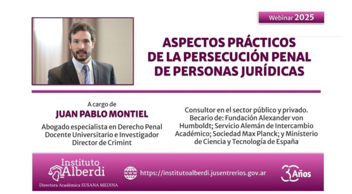 Las inscripciones se realizan de manera online en https://institutoalberdi.jusentrerios.gov.ar/events/webinar-aspectos-practicos-de-la-persecucion-penal-de-personas-juridicas/