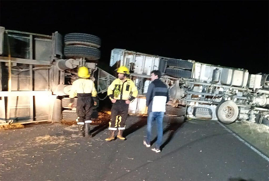 Según datos preliminares,  un camión marca Iveco, con acoplado, que transitaba por la citada arteria, terminó protagonizando un vuelco, quedando el rodado detenido en la calzada.