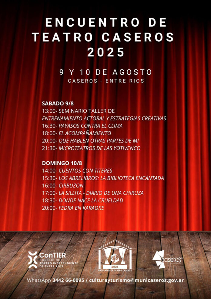 Los días sábado 9 y domingo 10 de agosto tendrá lugar en el Centro Cultural “Margarita Thea” y en espacios alternativos de la localidad el “Encuentro de Teatro Caseros 2025”, organizado por el Área de Cultura, Turismo y Deportes de la Municipalidad de Caseros.