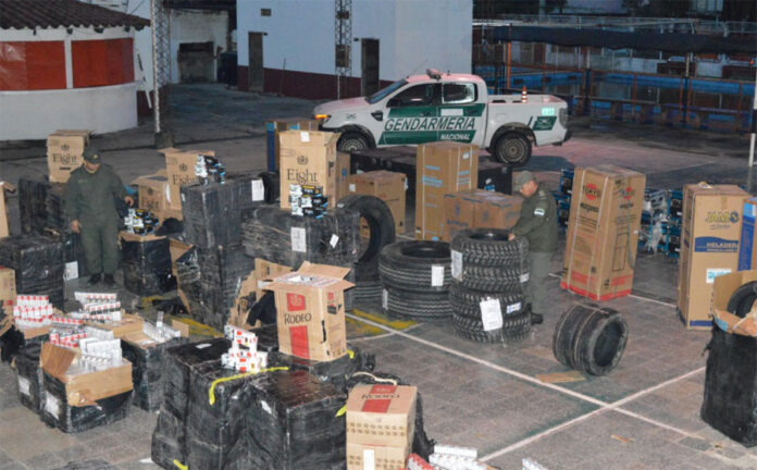Hoy, cerca del mediodía, finalizando las aperturas de las cajas y posterior conteo de los elementos incautados, los uniformados lograron identificar: 38 cubiertas de diferentes rodados, 227 cajas de cigarrillos equivalente a 113.320 paquetes, cinco heladeras, cuatro cocinas, tres aires acondicionados y 20 cajas/sistemas de iluminación led con accesorios sin la documentación correspondiente. El avalúo total de lo secuestrado asciende a 201.735.000 pesos.