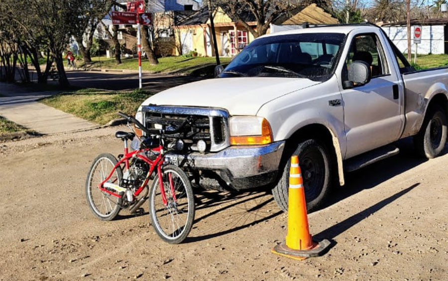 Por causas que se tratan de establecer, en el lugar colisionaron una camioneta marca Ford, modelo F100, de color blanco, conducida por un ciudadano de 50 años, y una bicicleta tipo playera con motor adaptado, que era guiada por un hombre de 65 años.