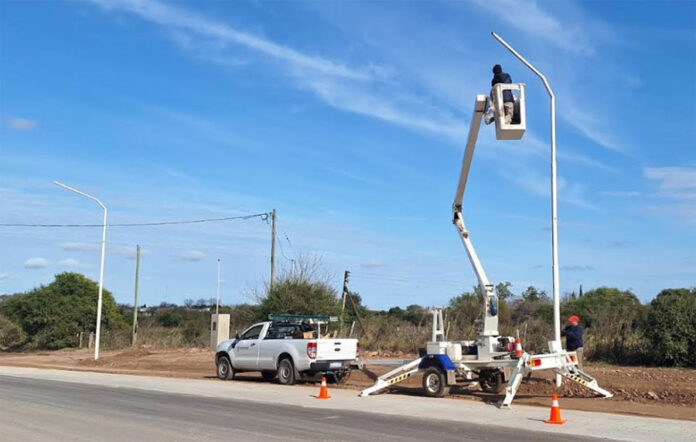 Personal municipal instaló las columnas y las luminarias led, recursos aportados íntegramente por el Municipio local.