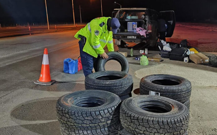 03/08/2025 – PUESTO DE CONTROL VIAL PASO CERRITO (PROCEDIMIENTO S/ INF. LEY 22.415 ART. 985 – CÓDIGO ADUANERO): En la fecha, siendo las 23:00 horas, se logró detener la marcha de un vehículo marca Volkswagen, modelo Amarok V6, conducido por un masculino de 50 años de edad, oriundo de Gral. Pueyrredon – Provincia de Buenos Aires. Una vez controlada la documentación y el dominio del rodado, se pudo constatar un total de 24 (veinticuatro) cubiertas de origen extranjero y nacional de diferentes marcas y rodados, sin ningún tipo de documentación de respaldo (factura o comprobante). Seguidamente se pone en conocimiento al Juzgado Federal de la localidad de Concordia, quien ordenó la intervención del Arca y personal de Aduana Concordia, procediendo al secuestro de la mercadería por la supuesta infracción a ley 22.415 Art. 985°. Quedando el conductor desocupado y supeditado a la causa.