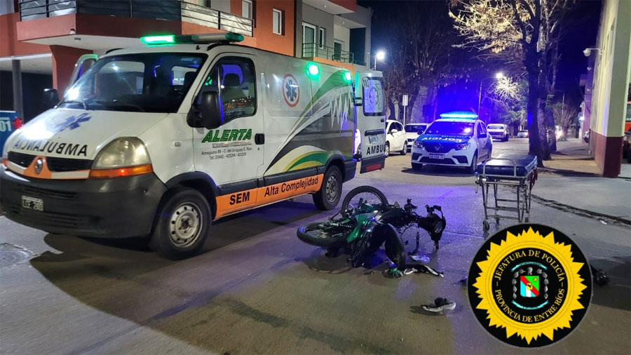 Como resultado del impacto, el motociclista sufrió golpes y debió ser trasladado por personal de emergencias médicas al Hospital Urquiza, donde fue asistido y diagnosticado con lesiones de carácter leve.