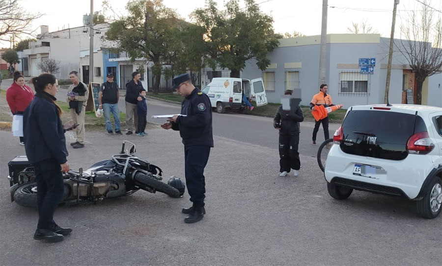 Según las primeras informaciones, ambos vehículos transitaban por Ana Urquiza de Victorica en sentidos opuestos y el accidente se produjo cuando el automóvil intentó girar hacia calle Sceliga, colisionando con la motocicleta.
