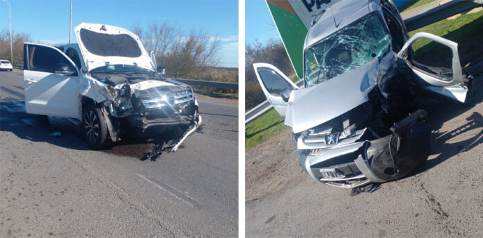 En la tarde de este domingo, alrededor de las 14:00 horas, se produjo un violento choque entre dos camionetas en la Autovía Nacional N° 12, a la altura del kilómetro 151, en el empalme de ingreso a Villa Paranacito.