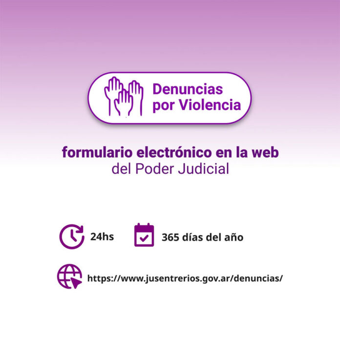 Con el objetivo de facilitar el acceso a la justicia a personas víctimas de violencia, el Poder Judicial de Entre Ríos posibilitó, desde 2020, la realización de denuncias desde cualquier dispositivo con conexión a internet. Para utilizar esta herramienta deben dirigirse a la página del Poder Judicial, www.jusentrerios.gov.ar a través del enlace https://www.jusentrerios.gov.ar/denuncias/