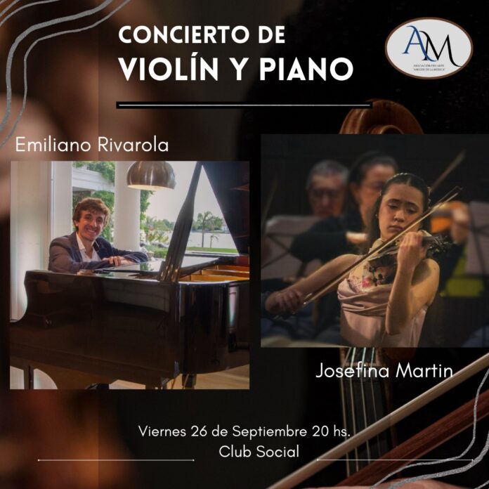 La Asociación Pro Arte Amigos de la Música continúa su Temporada 2025 con un concierto de música de cámara a cargo de dos jóvenes talentos locales: Josefina Martin en violín y Emiliano Rivarola en piano. El mismo tendrá lugar el próximo viernes 26 de septiembre a las 20:00 Hs. en el Club Social (San Martín 735). El repertorio incluirá importantes obras a dúo de Beethoven, Grieg y Sarasate; entre otros.
