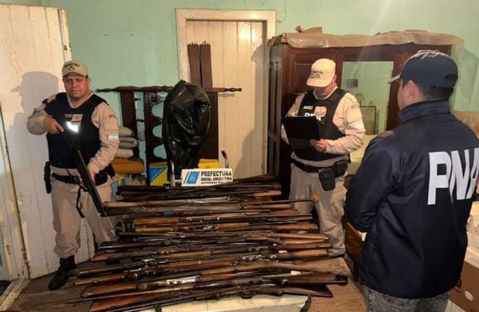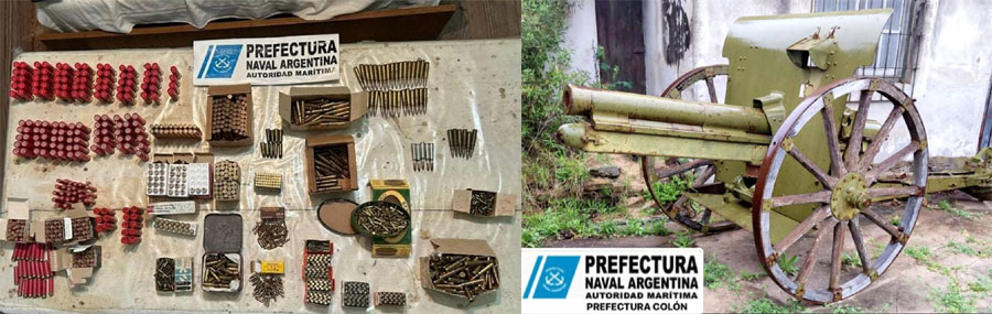 Fue durante un mega operativo en Pueblo Liebig, la Prefectura Naval logró desarticular un arsenal, pudiendo decomisar decenas de armas largas y cortas, centenares de municiones y hasta una pieza de artillería, entre otras cosas.
