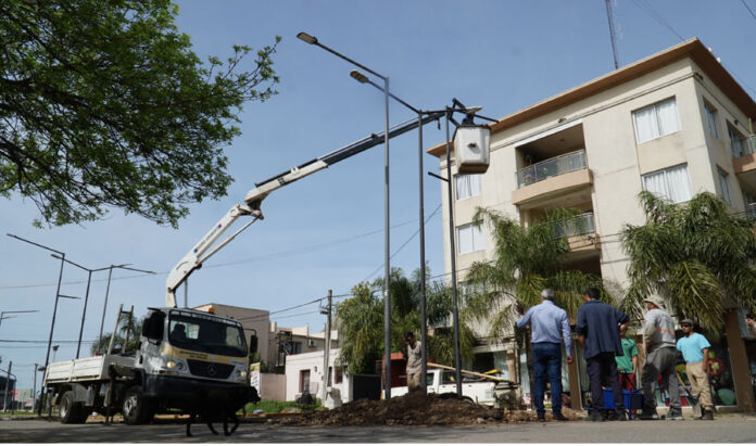 Simultáneamente, otras dos cuadrillas están a cargo de la construcción del camino peatonal central y de la nueva luminaria.